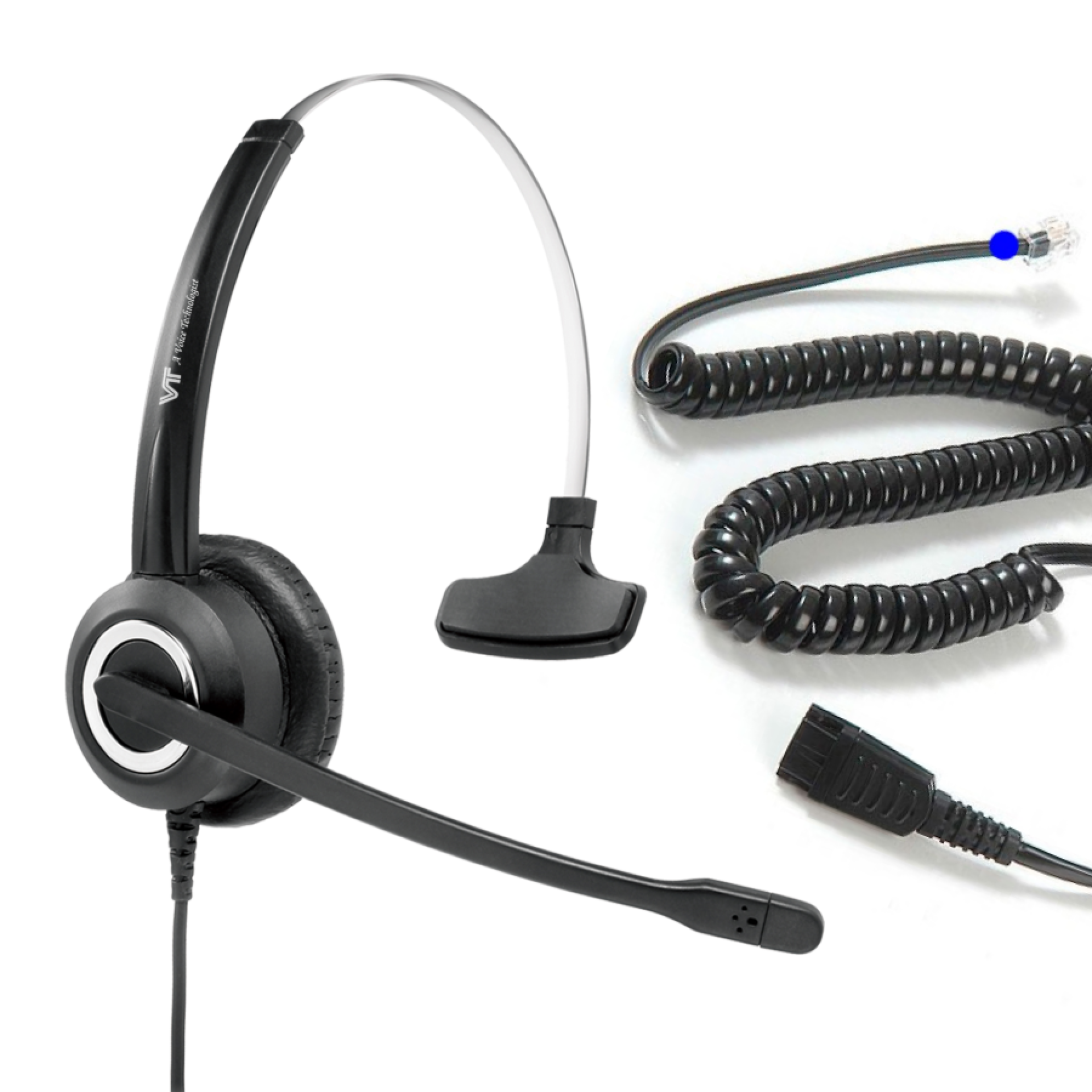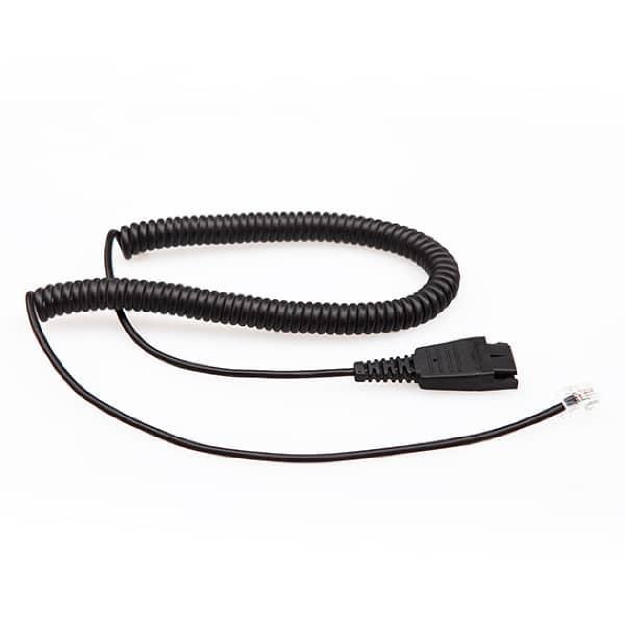 Con cable RJ9 para conectar a teléfonos de escritorio y conector QD de desconexión rápida compatible GN / Jabra permite al usuario desconectar el auricular sin necesidad remover el conector RJ9 de teléfono. Además tiene la ventaja de utilizar el mismo cabezal con distintos cables.